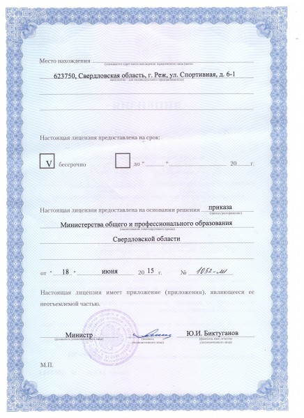 Адрес местонахождения образовательной организации* 623750, Свердловская область, г. Реж, ул. Спортивная 6-1